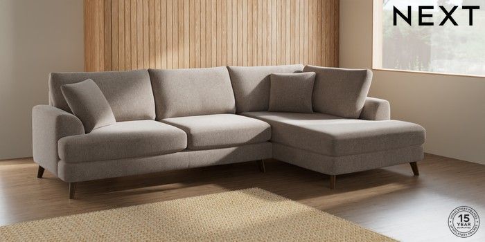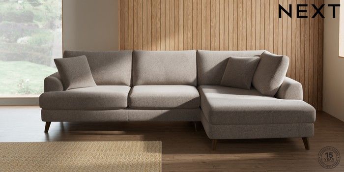 7.2.10 Parker Large Corner Chaise - Right Hand Chunky Chenille Light Dove Low Retro Tapered - Mid | Made Click here to use our website with more accessibility support, for example screen readers