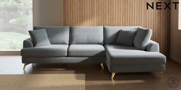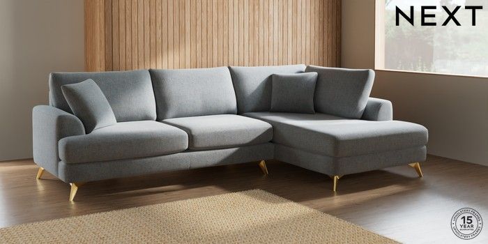7.2.10 Parker Large Corner Chaise - Right Hand Chunky Marl Mid Grey High Metal - Brass | Made Click here to use our website with more accessibility support, for example screen readers