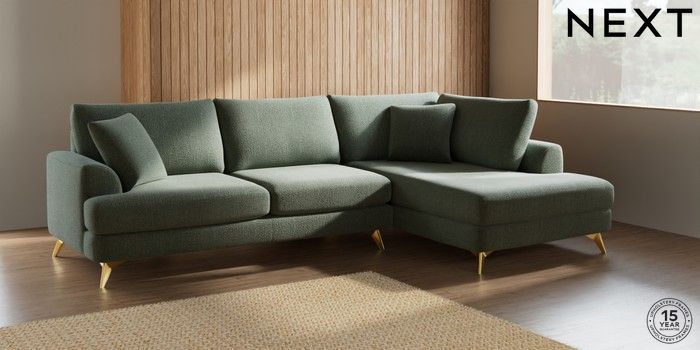 7.2.10 Parker Large Corner Chaise - Right Hand Chunky Texture Mid Forest Green High Metal - Brass | Made Click here to use our website with more accessibility support, for example screen readers