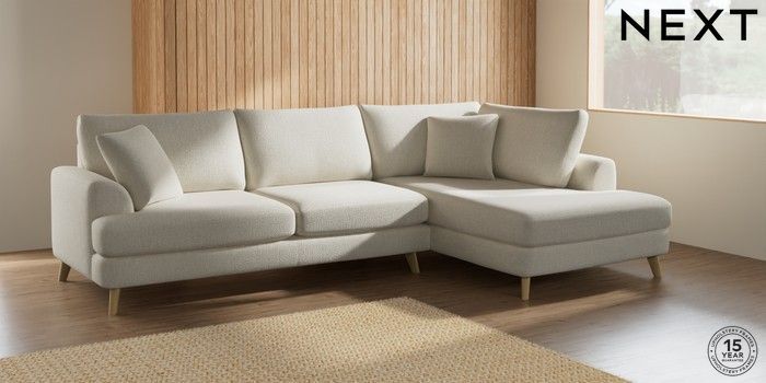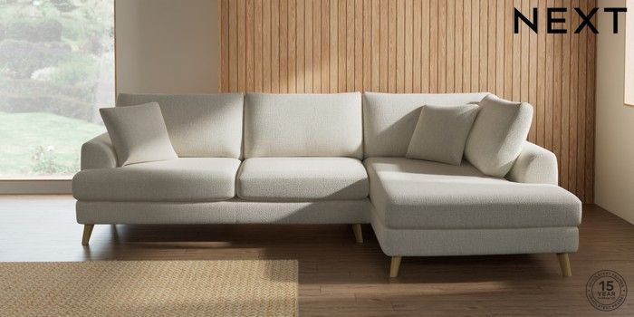 7.2.10 Parker Large Corner Chaise - Right Hand Chunky Texture Oyster Low Retro Tapered - Light | Made Click here to use our website with more accessibility support, for example screen readers