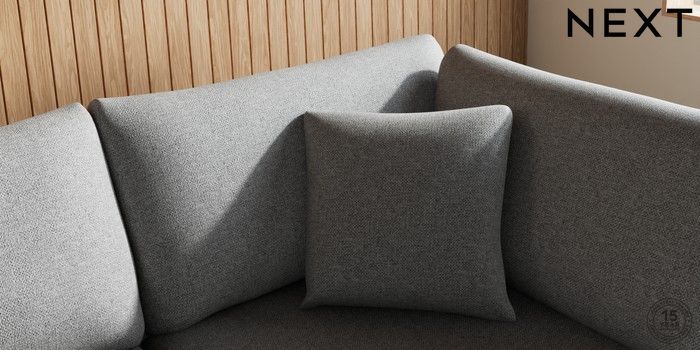 7.2.10 Parker Large Corner Chaise - Right Hand Chunky Weave Mid Grey Low Retro Tapered - Light | Made Click here to use our website with more accessibility support, for example screen readers