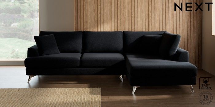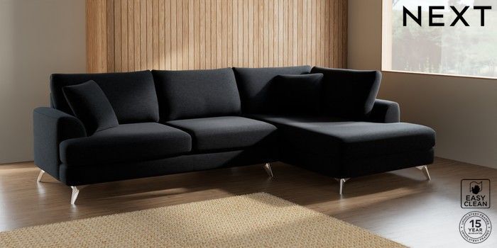 7.2.10 Parker Large Corner Chaise - Right Hand Fine Chenille Easy Clean Black High Metal - Chrome | Made Click here to use our website with more accessibility support, for example screen readers