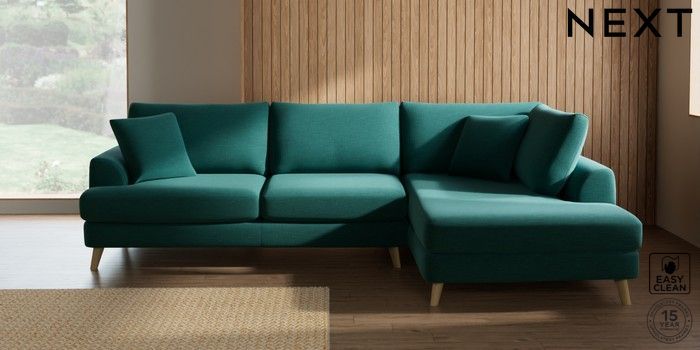 7.2.10 Parker Large Corner Chaise - Right Hand Fine Chenille Easy Clean Dark Juniper Green Low Retro Tapered - Light | Made Click here to use our website with more accessibility support, for example screen readers