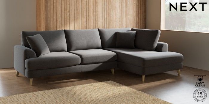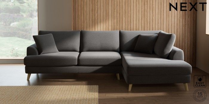 7.2.10 Parker Large Corner Chaise - Right Hand Fine Chenille Easy Clean Dark Smoke Grey Low Retro Tapered - Light | Made Click here to use our website with more accessibility support, for example screen readers