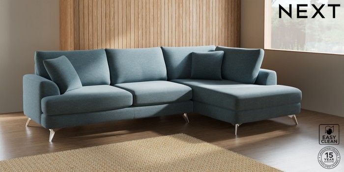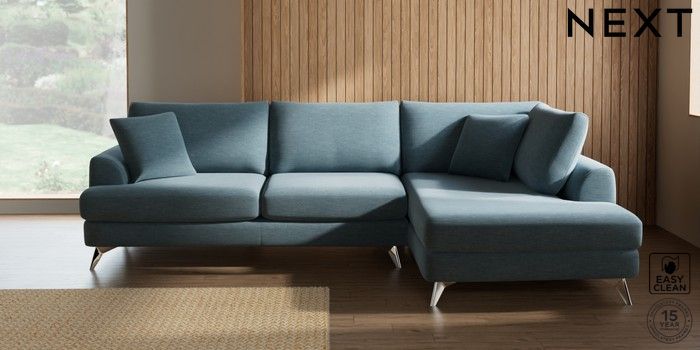 7.2.10 Parker Large Corner Chaise - Right Hand Fine Chenille Easy Clean Mid Blue High Metal - Chrome | Made Click here to use our website with more accessibility support, for example screen readers