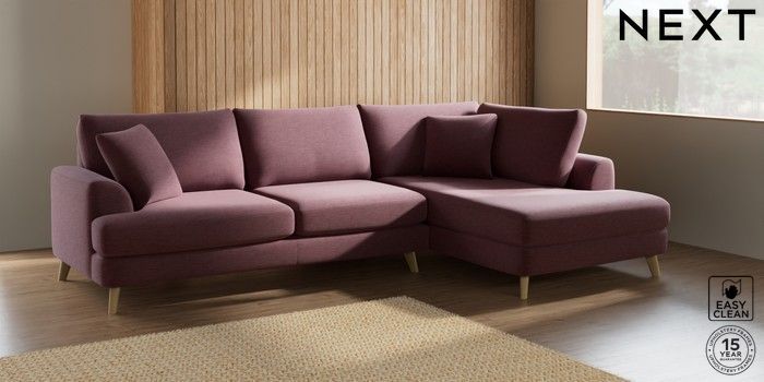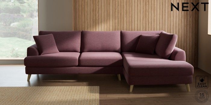7.2.10 Parker Large Corner Chaise - Right Hand Fine Chenille Easy Clean Mid Mulberry Purple Low Retro Tapered - Light | Made Click here to use our website with more accessibility support, for example screen readers