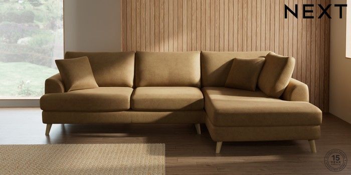 7.2.10 Parker Large Corner Chaise - Right Hand Luxe Chenille Honey Yellow Low Retro Tapered - Light | Made Click here to use our website with more accessibility support, for example screen readers