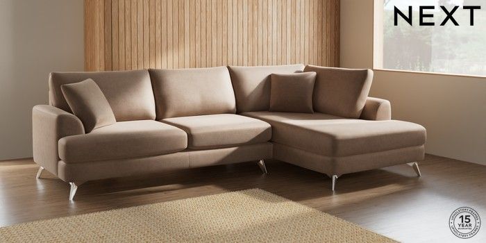 7.2.10 Parker Large Corner Chaise - Right Hand Luxe Chenille Mid Natural High Metal - Chrome | Made Click here to use our website with more accessibility support, for example screen readers