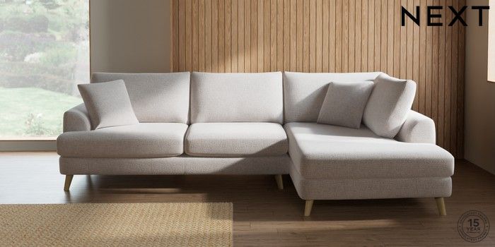 7.2.10 Parker Large Corner Chaise - Right Hand Multi Weave Oyster Low Retro Tapered - Light | Made Click here to use our website with more accessibility support, for example screen readers