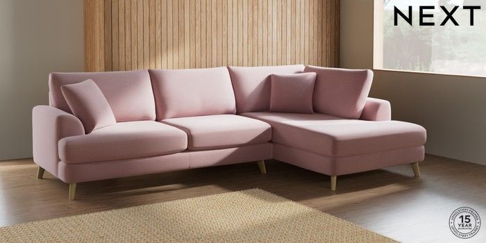 7.2.10 Parker Large Corner Chaise - Right Hand Natural Mix Light Rose Pink Low Retro Tapered - Light | Made Click here to use our website with more accessibility support, for example screen readers