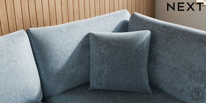 7.2.10 Parker Large Corner Chaise - Right Hand Plush Chenille Light Blue High Metal - Black | Made Click here to use our website with more accessibility support, for example screen readers