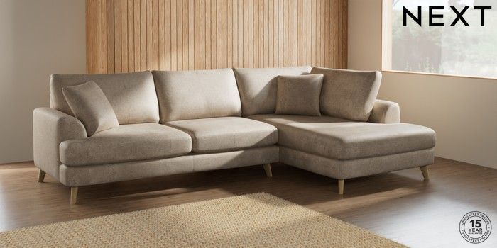 7.2.10 Parker Large Corner Chaise - Right Hand Plush Chenille Light Natural Low Retro Tapered - Light | Made Click here to use our website with more accessibility support, for example screen readers