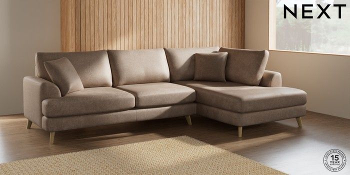 7.2.10 Parker Large Corner Chaise - Right Hand Plush Chenille Mid Natural Low Retro Tapered - Light | Made Click here to use our website with more accessibility support, for example screen readers