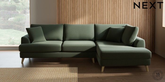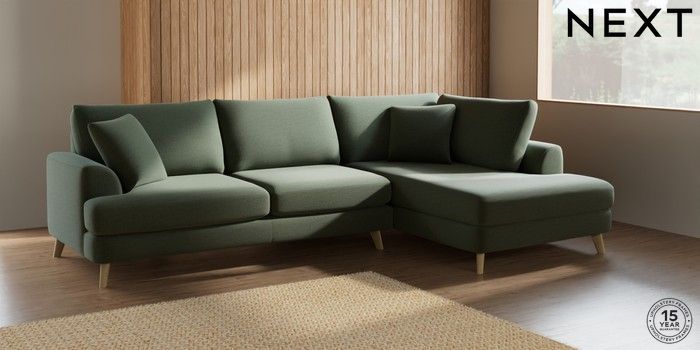 7.2.10 Parker Large Corner Chaise - Right Hand Relaxed Linen Look Dark Green Low Retro Tapered - Light | Made Click here to use our website with more accessibility support, for example screen readers