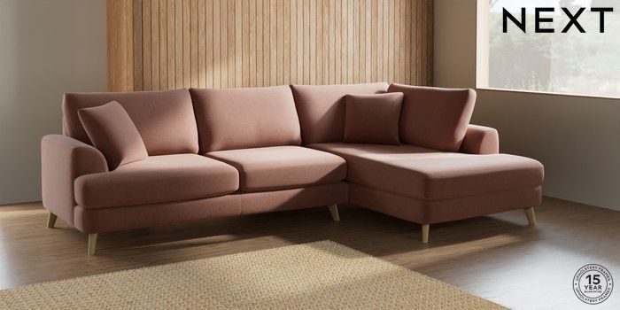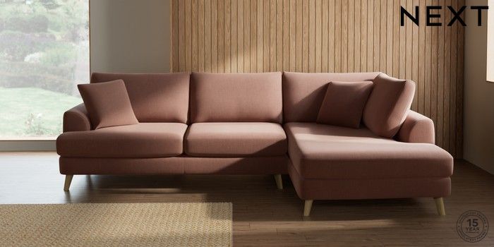 7.2.10 Parker Large Corner Chaise - Right Hand Relaxed Linen Look Light Rust Brown Low Retro Tapered - Light | Made Click here to use our website with more accessibility support, for example screen readers