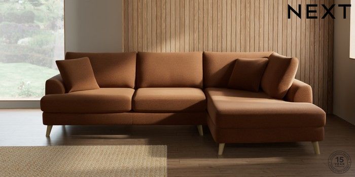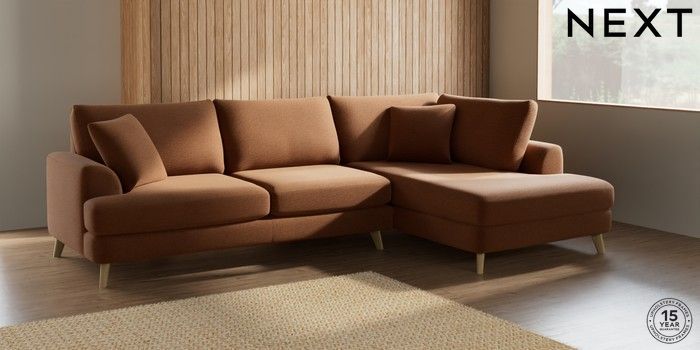 7.2.10 Parker Large Corner Chaise - Right Hand Ripple Chenille Mid Rust Brown Low Retro Tapered - Light | Made Click here to use our website with more accessibility support, for example screen readers