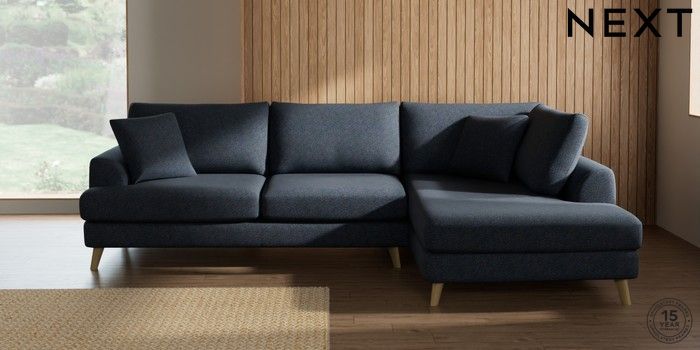 7.2.10 Parker Large Corner Chaise - Right Hand Tweedy Chenille Navy Blue Low Retro Tapered - Light | Made Click here to use our website with more accessibility support, for example screen readers