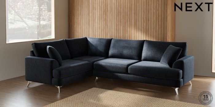 7.2.10 Parker Large Corner Sofa - Left Hand Boucle Chenille Dark Slate Blue High Metal - Chrome | Made Click here to use our website with more accessibility support, for example screen readers