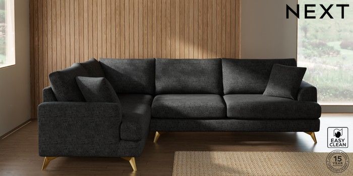 7.2.10 Parker Large Corner Sofa - Left Hand Boucle Weave Easy Clean Charcoal Grey High Metal - Brass | Made Click here to use our website with more accessibility support, for example screen readers