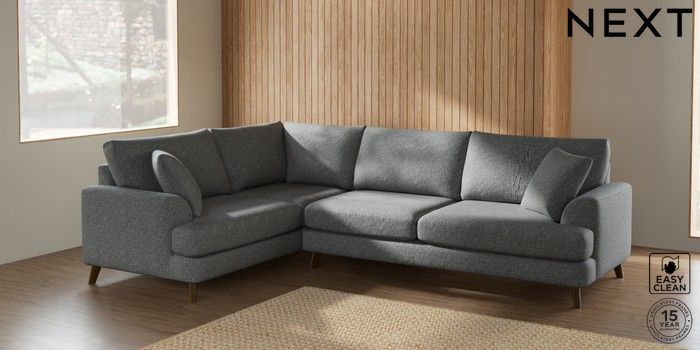 7.2.10 Parker Large Corner Sofa - Left Hand Chunky Boucle Easy Clean Mid Grey Low Retro Tapered - Mid | Made Click here to use our website with more accessibility support, for example screen readers