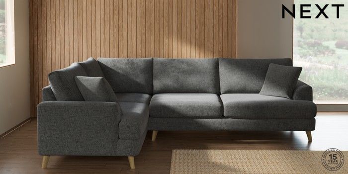 7.2.10 Parker Large Corner Sofa - Left Hand Chunky Chenille Dark Grey Low Retro Tapered - Light | Made Click here to use our website with more accessibility support, for example screen readers