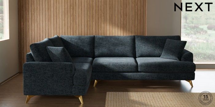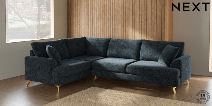 7.2.10 Parker Large Corner Sofa - Left Hand Chunky Chenille Dark Navy Blue High Metal - Brass | Made Click here to use our website with more accessibility support, for example screen readers