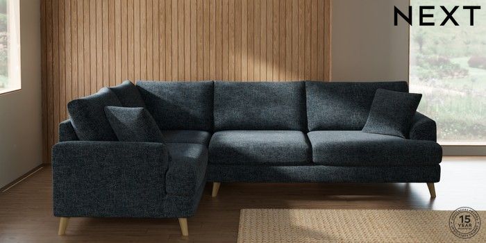 7.2.10 Parker Large Corner Sofa - Left Hand Chunky Chenille Dark Navy Blue Low Retro Tapered - Light | Made Click here to use our website with more accessibility support, for example screen readers