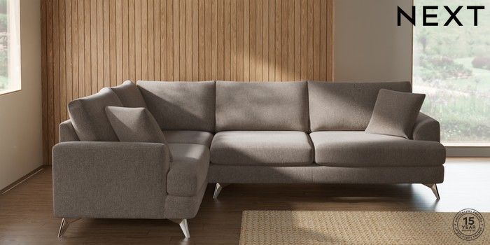 7.2.10 Parker Large Corner Sofa - Left Hand Chunky Chenille Light Dove High Metal - Chrome | Made Click here to use our website with more accessibility support, for example screen readers