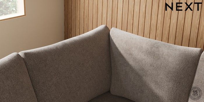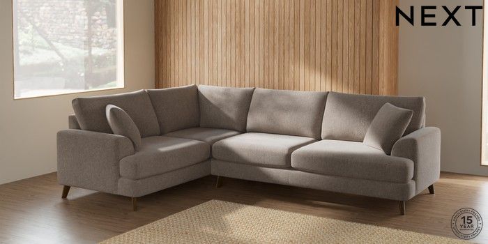 7.2.10 Parker Large Corner Sofa - Left Hand Chunky Chenille Light Dove Low Retro Tapered - Mid | Made Click here to use our website with more accessibility support, for example screen readers
