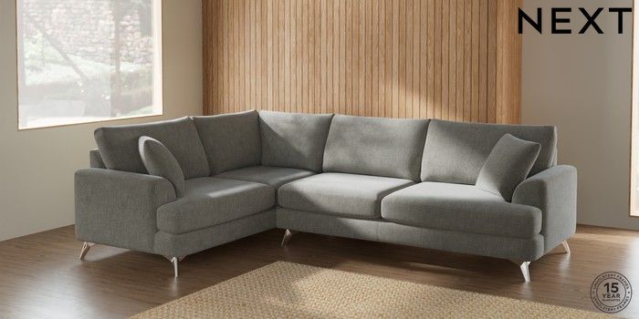 7.2.10 Parker Large Corner Sofa - Left Hand Chunky Chenille Light Grey High Metal - Chrome | Made Click here to use our website with more accessibility support, for example screen readers