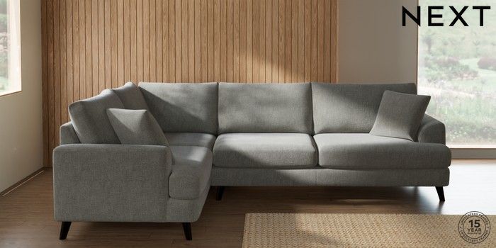 7.2.10 Parker Large Corner Sofa - Left Hand Chunky Chenille Light Grey Low Retro Tapered - Dark | Made Click here to use our website with more accessibility support, for example screen readers