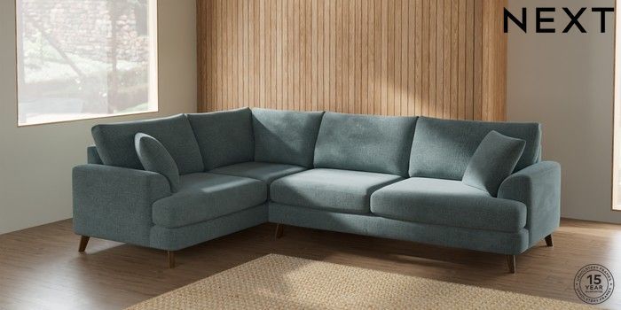 7.2.10 Parker Large Corner Sofa - Left Hand Chunky Chenille Light Teal Green Low Retro Tapered - Mid | Made Click here to use our website with more accessibility support, for example screen readers