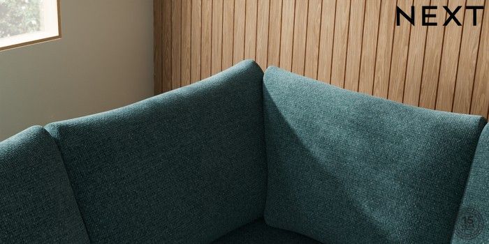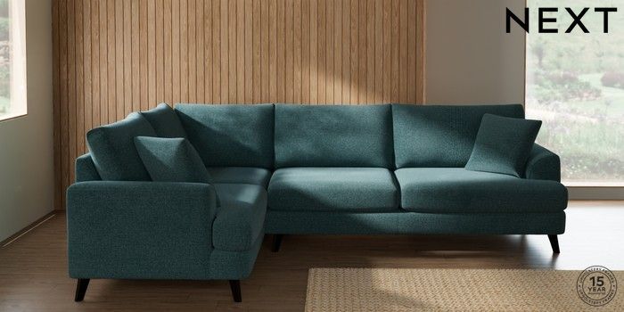 7.2.10 Parker Large Corner Sofa - Left Hand Chunky Chenille Mid Teal Green Low Retro Tapered - Dark | Made Click here to use our website with more accessibility support, for example screen readers