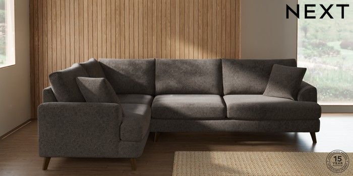 7.2.10 Parker Large Corner Sofa - Left Hand Chunky Chenille Mink Brown Low Retro Tapered - Mid | Made Click here to use our website with more accessibility support, for example screen readers