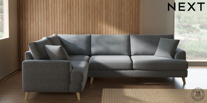 7.2.10 Parker Large Corner Sofa - Left Hand Chunky Marl Mid Grey Low Retro Tapered - Light | Made Click here to use our website with more accessibility support, for example screen readers