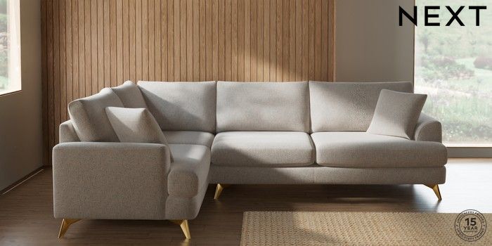 7.2.10 Parker Large Corner Sofa - Left Hand Chunky Marl Oyster High Metal - Brass | Made Click here to use our website with more accessibility support, for example screen readers