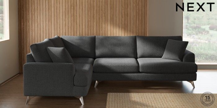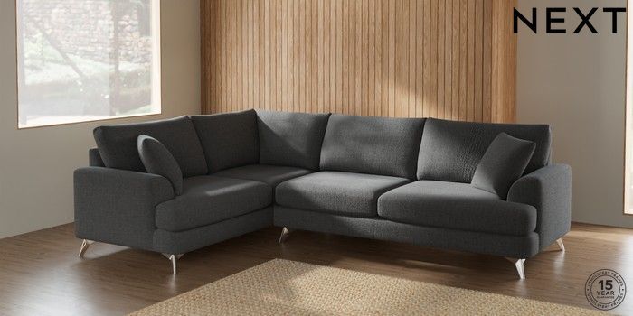 7.2.10 Parker Large Corner Sofa - Left Hand Chunky Texture Dark Grey High Metal - Chrome | Made Click here to use our website with more accessibility support, for example screen readers