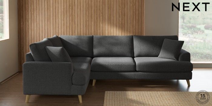 7.2.10 Parker Large Corner Sofa - Left Hand Chunky Texture Dark Grey Low Retro Tapered - Light | Made Click here to use our website with more accessibility support, for example screen readers