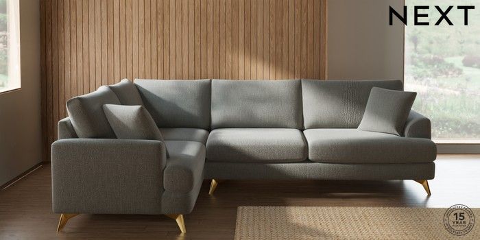 7.2.10 Parker Large Corner Sofa - Left Hand Chunky Texture Dove High Metal - Brass | Made Click here to use our website with more accessibility support, for example screen readers