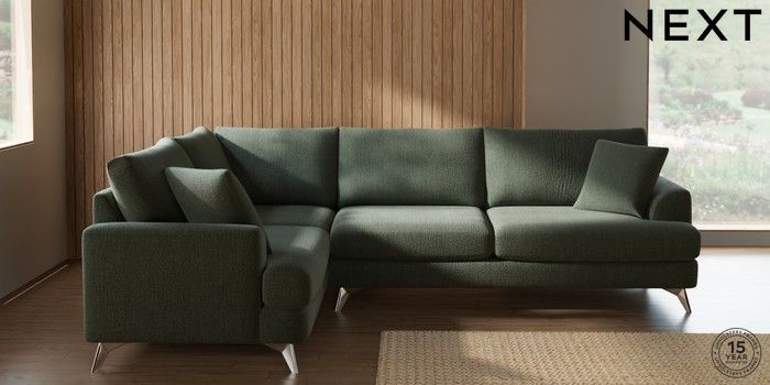 7.2.10 Parker Large Corner Sofa - Left Hand Chunky Texture Mid Forest Green High Metal - Chrome | Made Click here to use our website with more accessibility support, for example screen readers