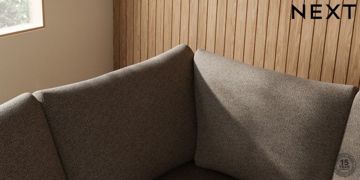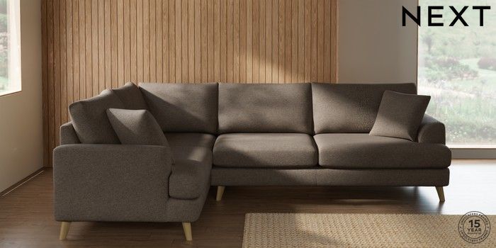 7.2.10 Parker Large Corner Sofa - Left Hand Chunky Weave Dark Natural Low Retro Tapered - Light | Made Click here to use our website with more accessibility support, for example screen readers