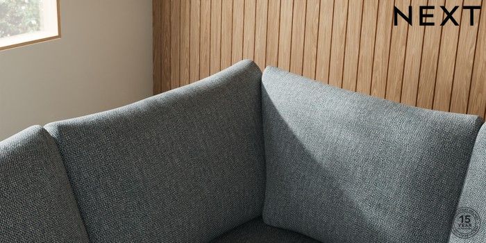 7.2.10 Parker Large Corner Sofa - Left Hand Chunky Weave Mid Blue Low Retro Tapered - Mid | Made Click here to use our website with more accessibility support, for example screen readers