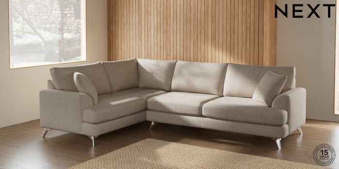 7.2.10 Parker Large Corner Sofa - Left Hand Chunky Weave Mid Natural High Metal - Chrome | Made Click here to use our website with more accessibility support, for example screen readers