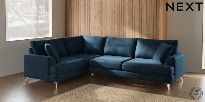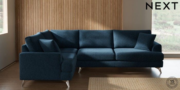7.2.10 Parker Large Corner Sofa - Left Hand Cotswold Chenille Dark Blue High Metal - Chrome | Made Click here to use our website with more accessibility support, for example screen readers