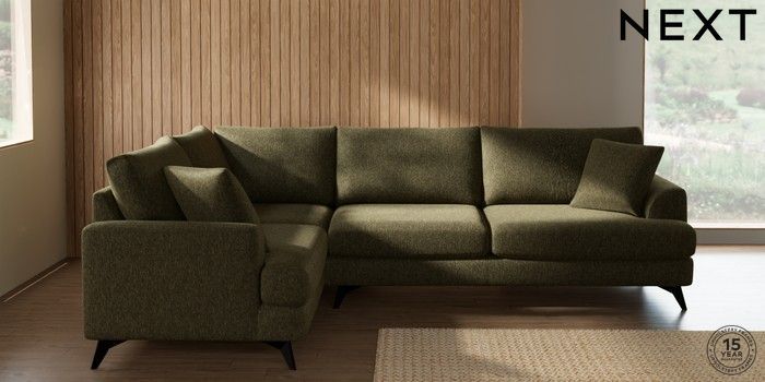 7.2.10 Parker Large Corner Sofa - Left Hand Cotswold Chenille Dark Green High Metal - Black | Made Click here to use our website with more accessibility support, for example screen readers
