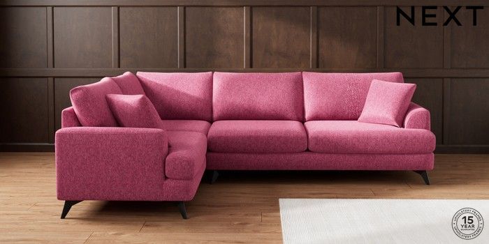 7.2.10 Parker Large Corner Sofa - Left Hand Cotswold Chenille Dark Raspberry Pink High Metal - Black | Made Click here to use our website with more accessibility support, for example screen readers