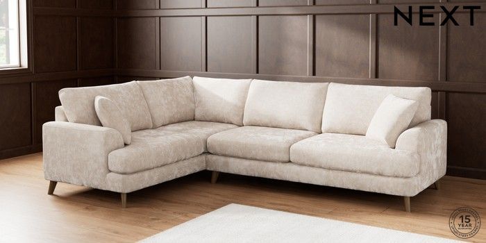 7.2.10 Parker Large Corner Sofa - Left Hand Distressed Velour Mid Natural Low Retro Tapered - Mid | Made Click here to use our website with more accessibility support, for example screen readers
