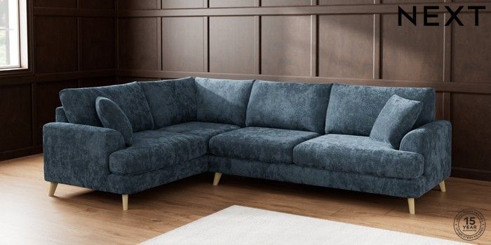 7.2.10 Parker Large Corner Sofa - Left Hand Distressed Velour Midnight Blue Low Retro Tapered - Light | Made Click here to use our website with more accessibility support, for example screen readers