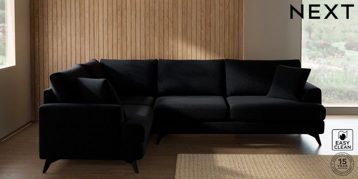 7.2.10 Parker Large Corner Sofa - Left Hand Fine Chenille Easy Clean Black High Metal - Black | Made Click here to use our website with more accessibility support, for example screen readers