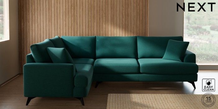 7.2.10 Parker Large Corner Sofa - Left Hand Fine Chenille Easy Clean Dark Juniper Green High Metal - Black | Made Click here to use our website with more accessibility support, for example screen readers